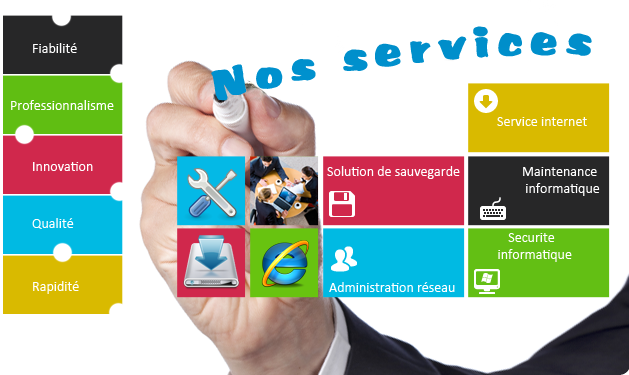 Nous assurons diverses prestations de services comme la maintenance d’équipement et de système informatique,